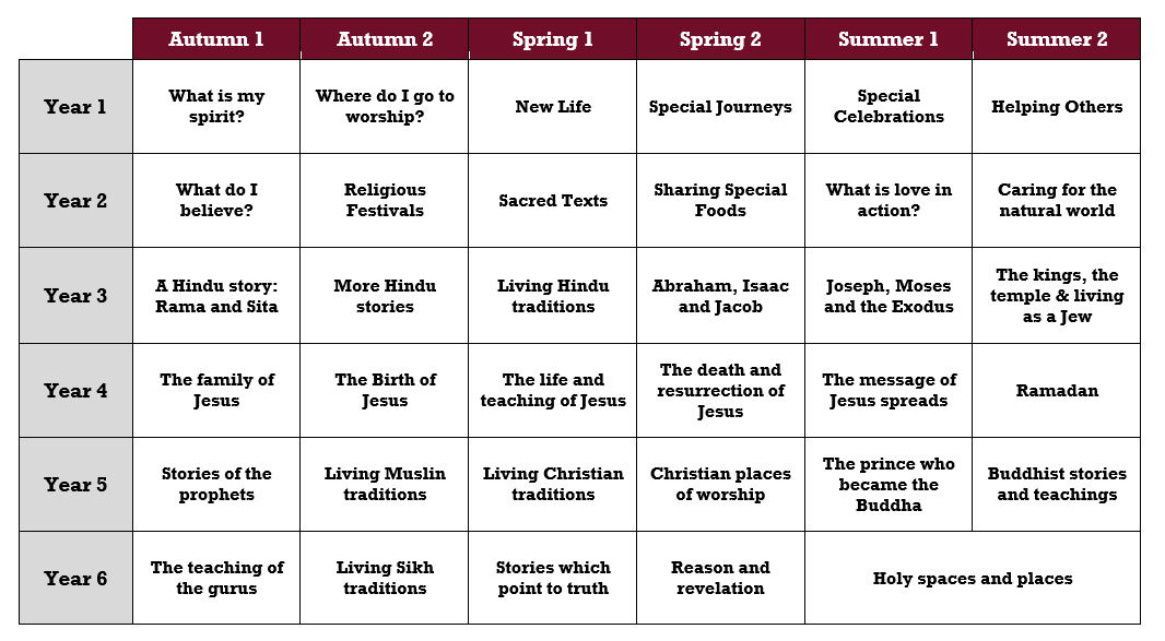Curriculum Documentation for our current Religious Education Provision (until Summer 1):